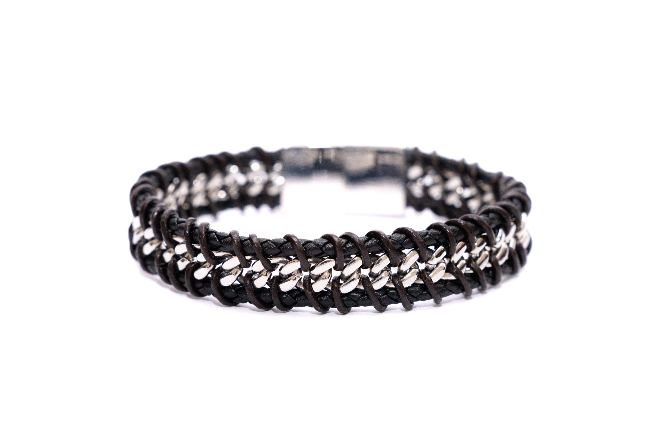BRACCIALE UOMO ACCIAIO E CUOIO CATENA CENTRALE IM101