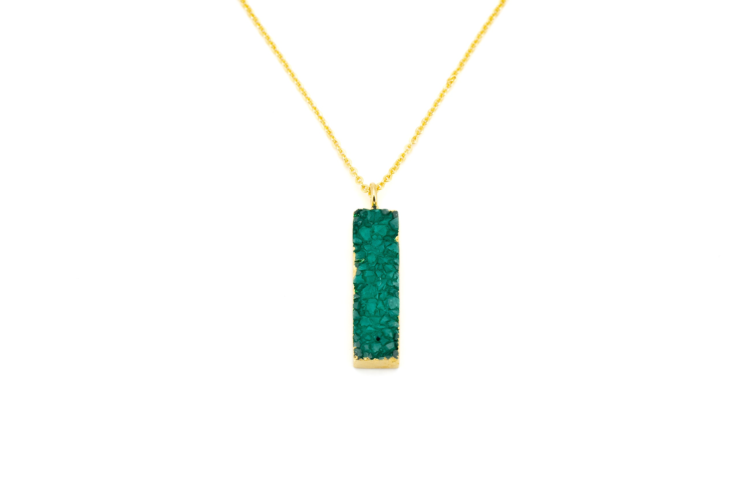 COLLANA CATENA CORTA OTTONE PIETRA RETT. AGATA COLORATA VERDE MO63V