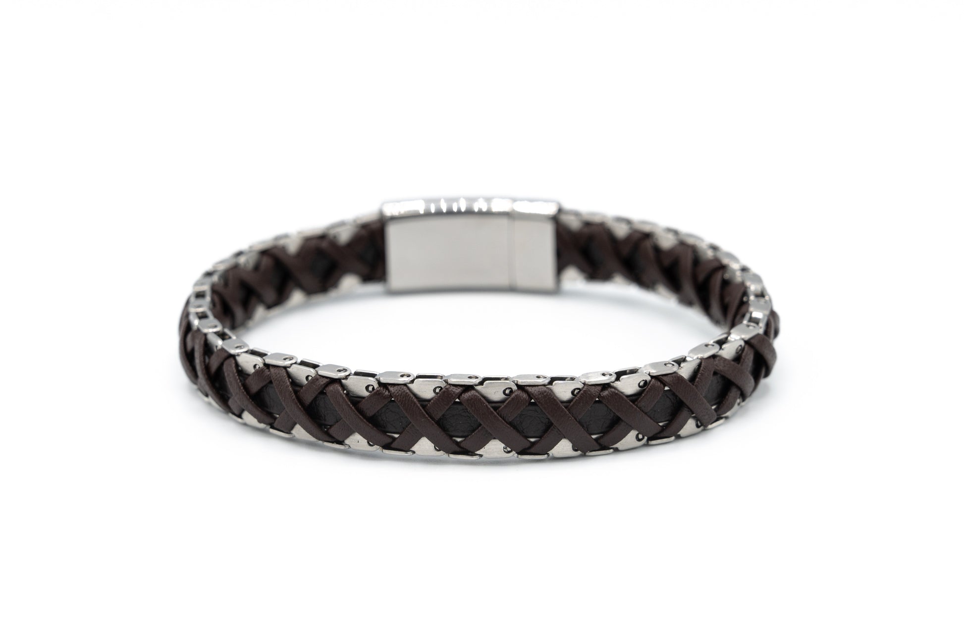 BRACCIALE UOMO ACCIAIO E CUOIO INTRECCIATO IS06-21