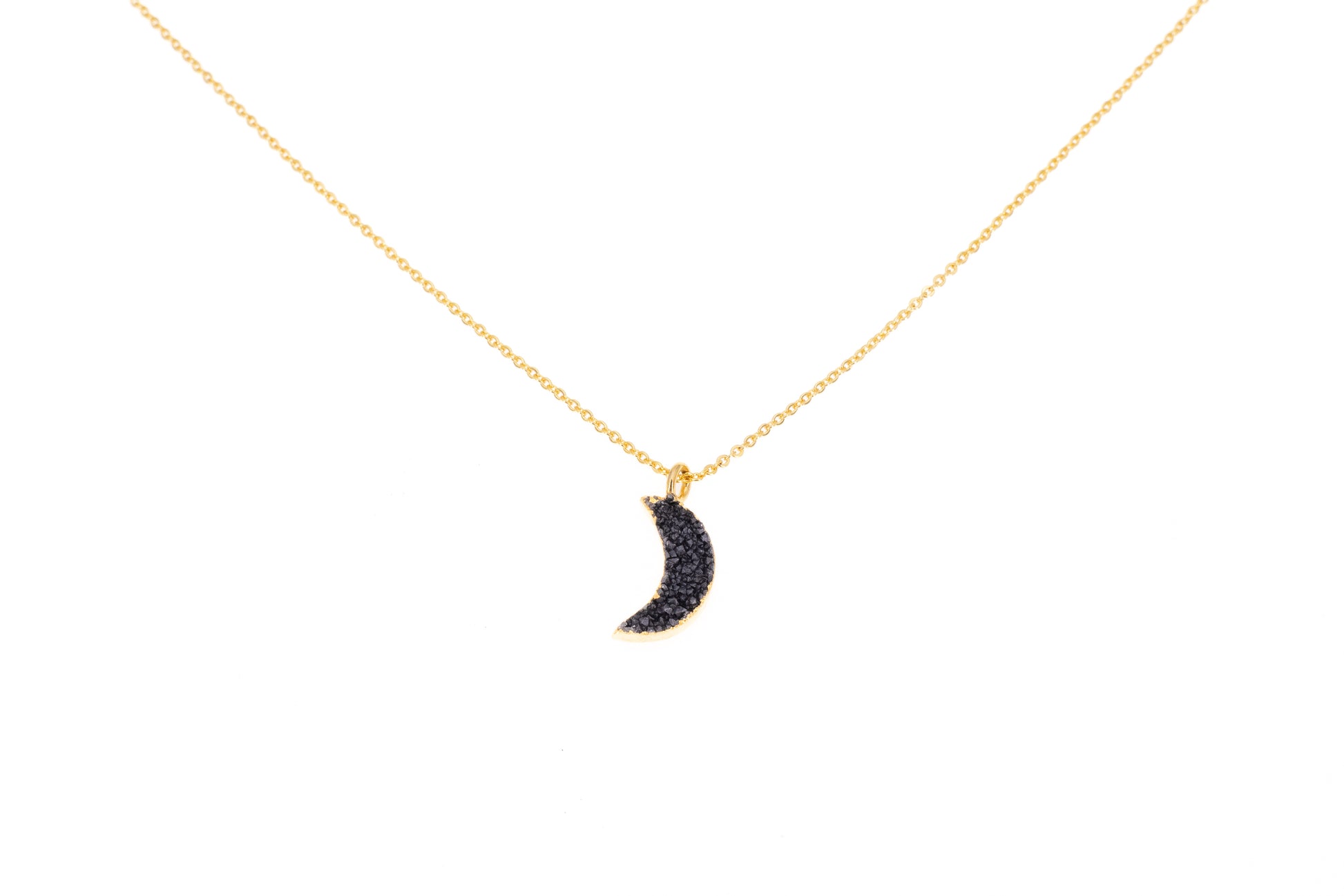 COLLANA CATENA CORTA OTTONE LUNA AGATA COLORATA NERA MO125N
