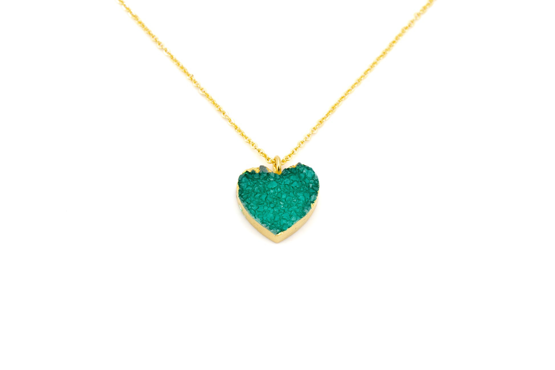 COLLANA CATENA CORTA OTTONE CUORE AGATA COLORATA VERDE MO60V