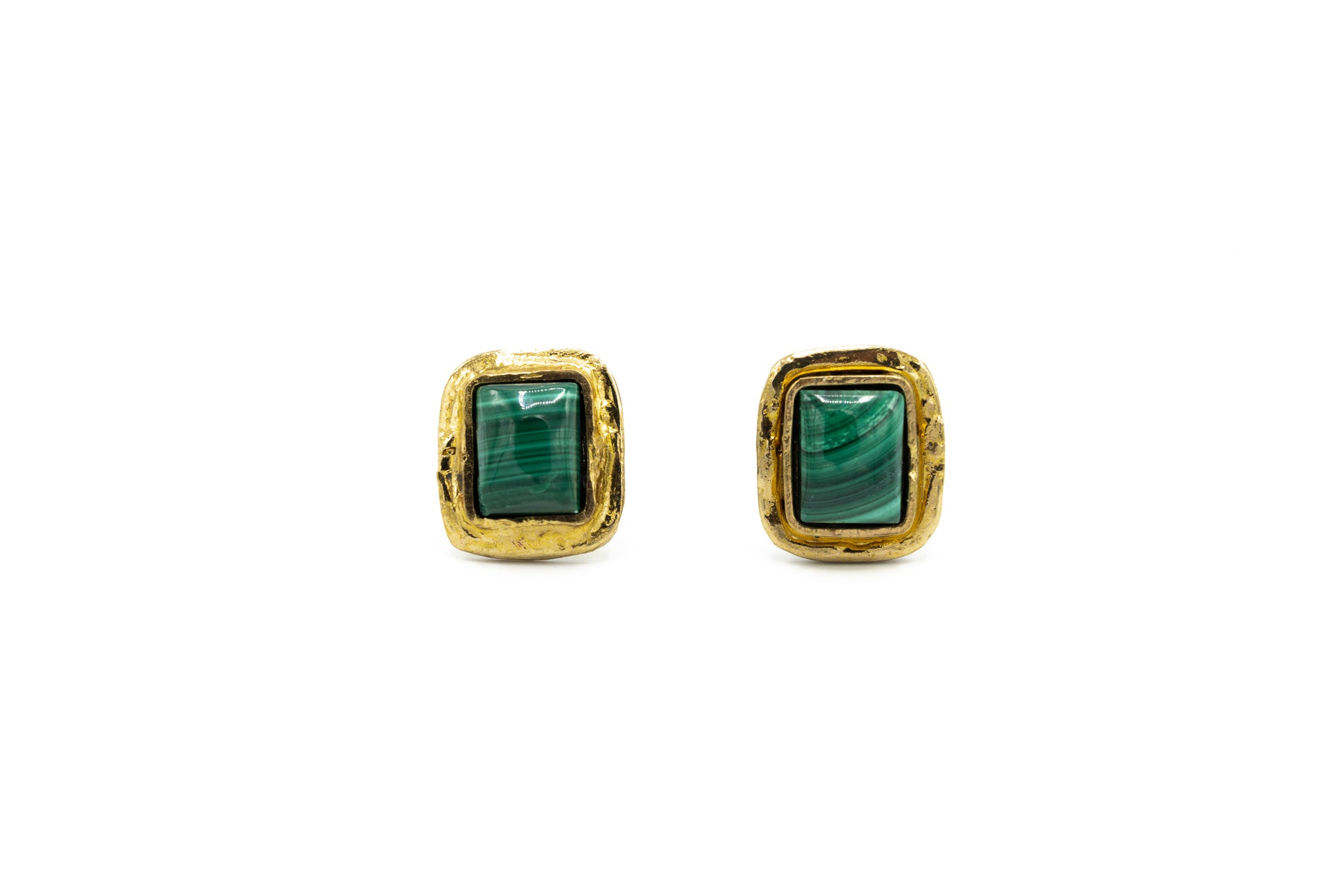 ORECCHINI OTTONE UNA PIETRA MALACHITE SH298