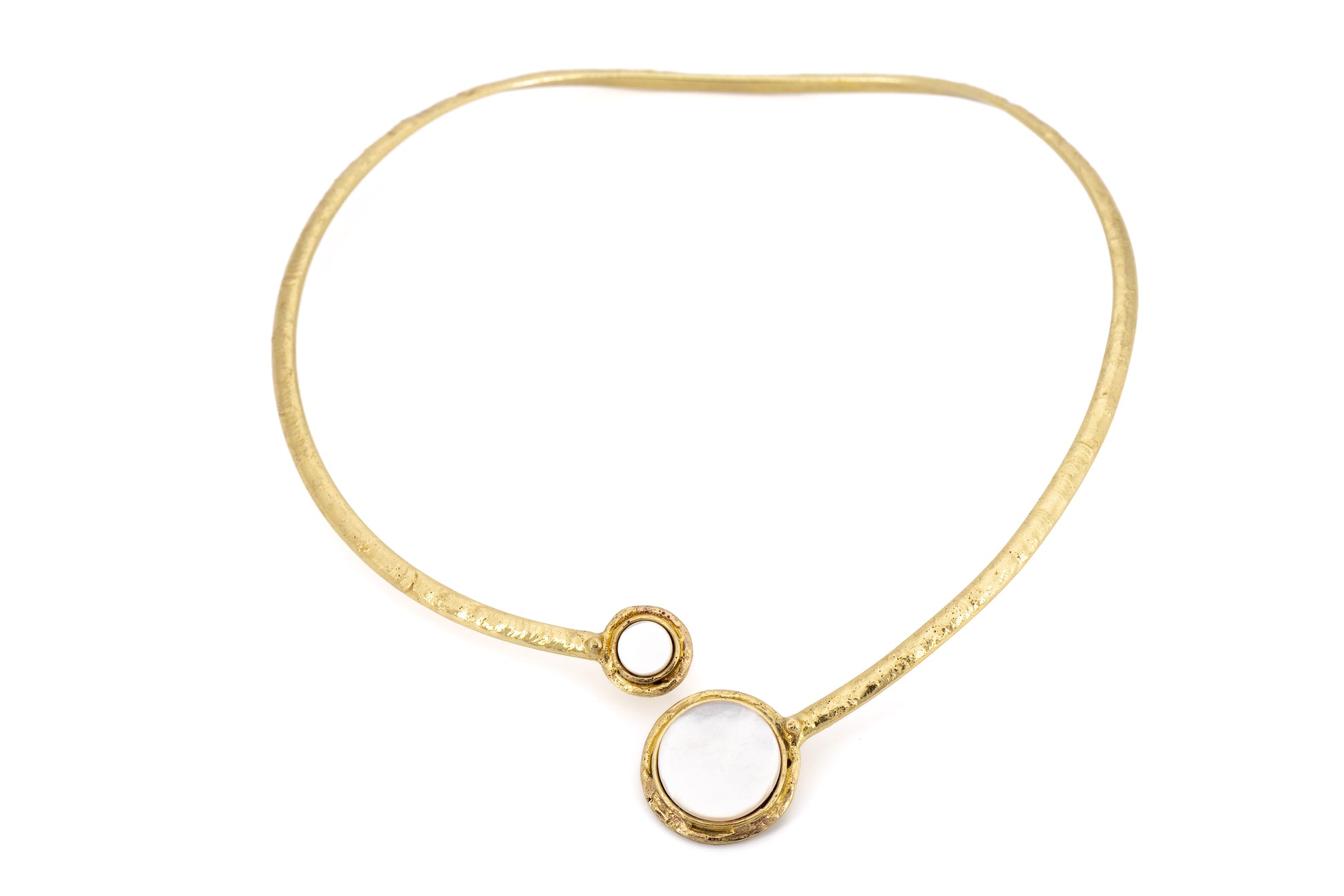 CHOKER OTTONE CON DUE PIETRE TONDE MADREPERLA SH414